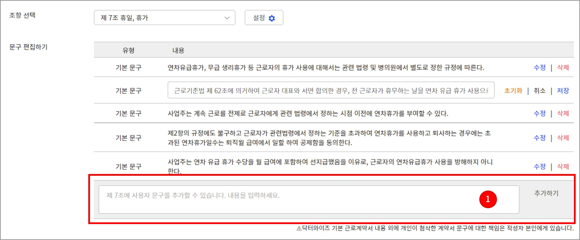 내용을 입력하고 추가하기를 누르면 계약 서식에 추가됩니다.