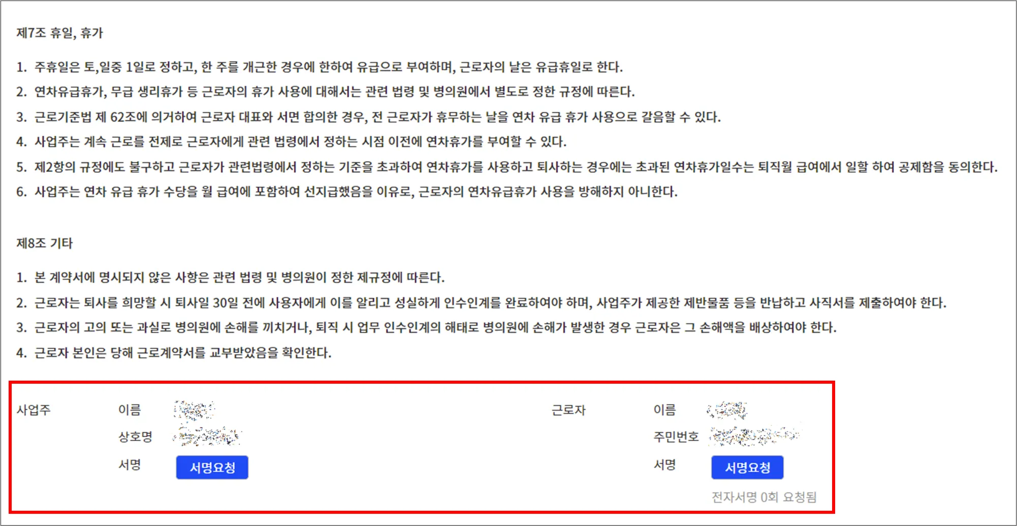 7. 계약서 문구를 수정, 추가할 수 있습니다.
