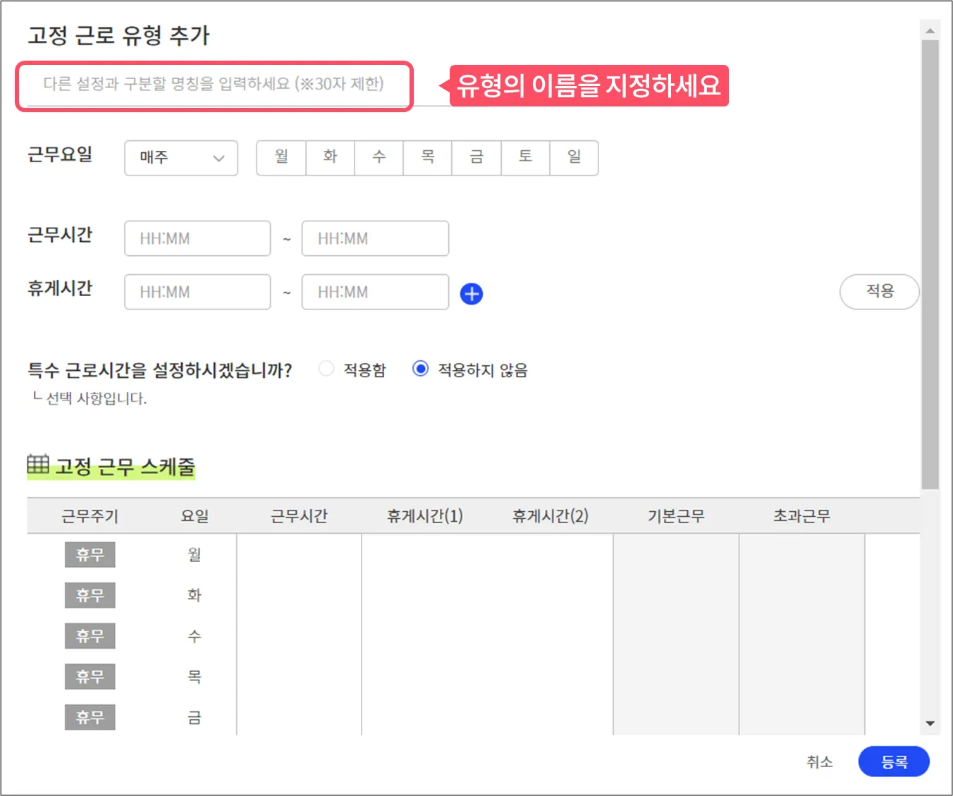 1. 근로시간 유형 이름 설정
