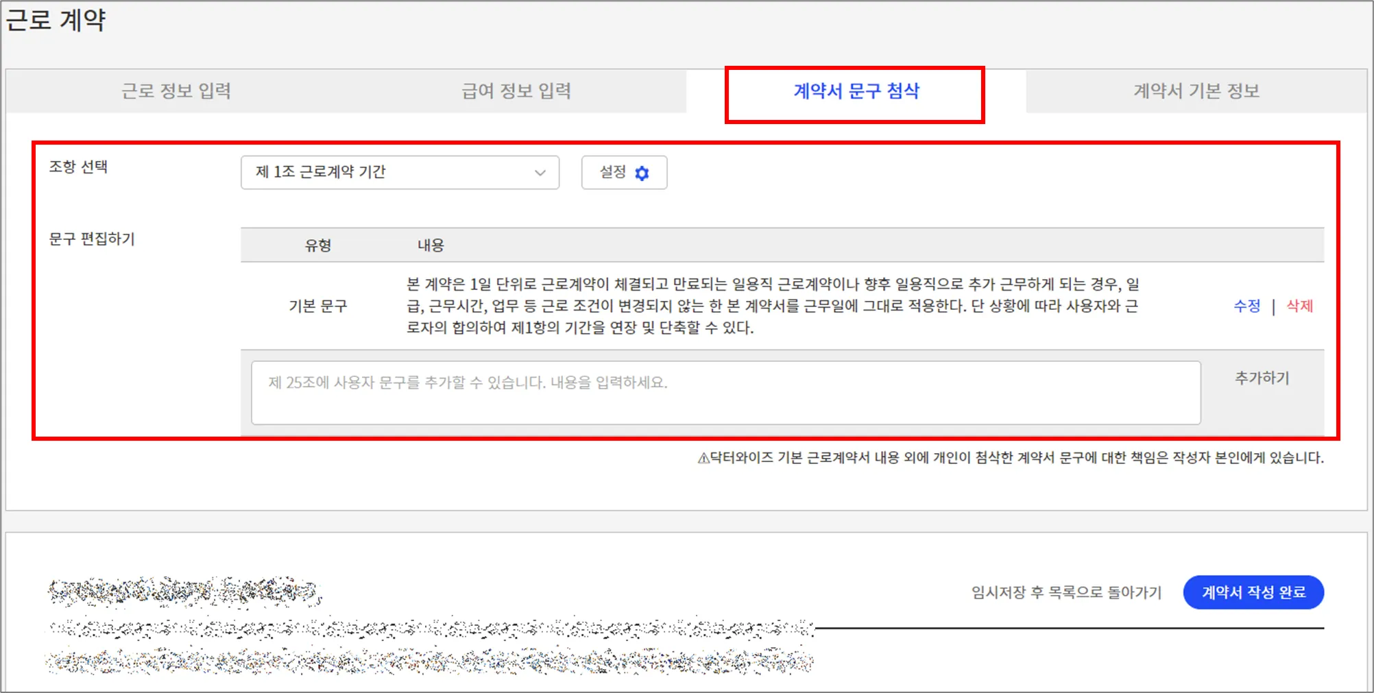 5. 계약서 문구를 수정, 추가할 수 있습니다.