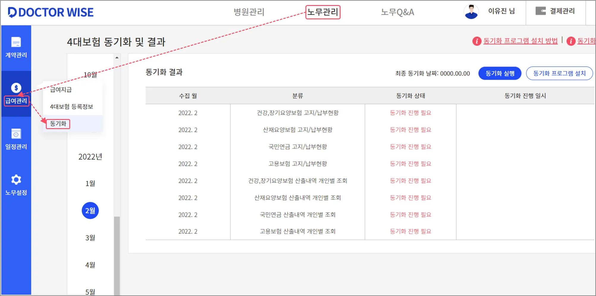 메뉴경로 : 노무관리 - 급여관리 - 동기화