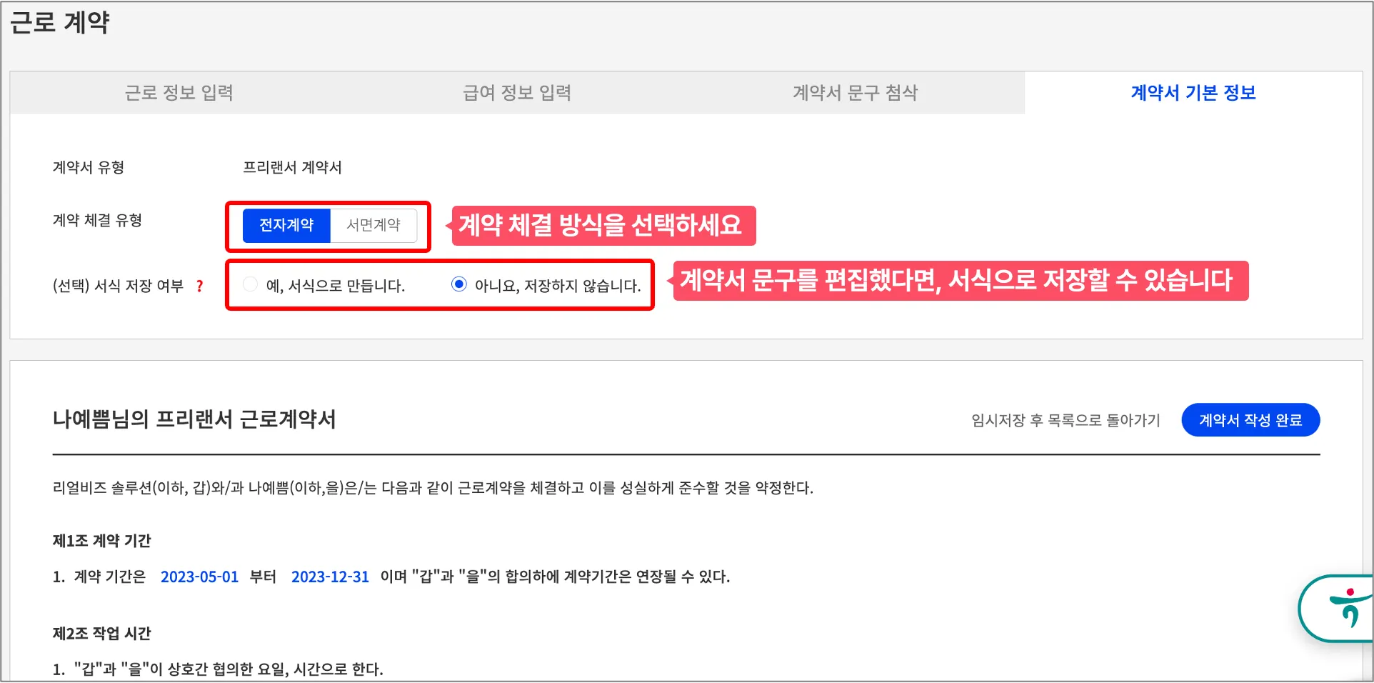 근로계약 서식 편집 기능 가이드를 확인하세요.