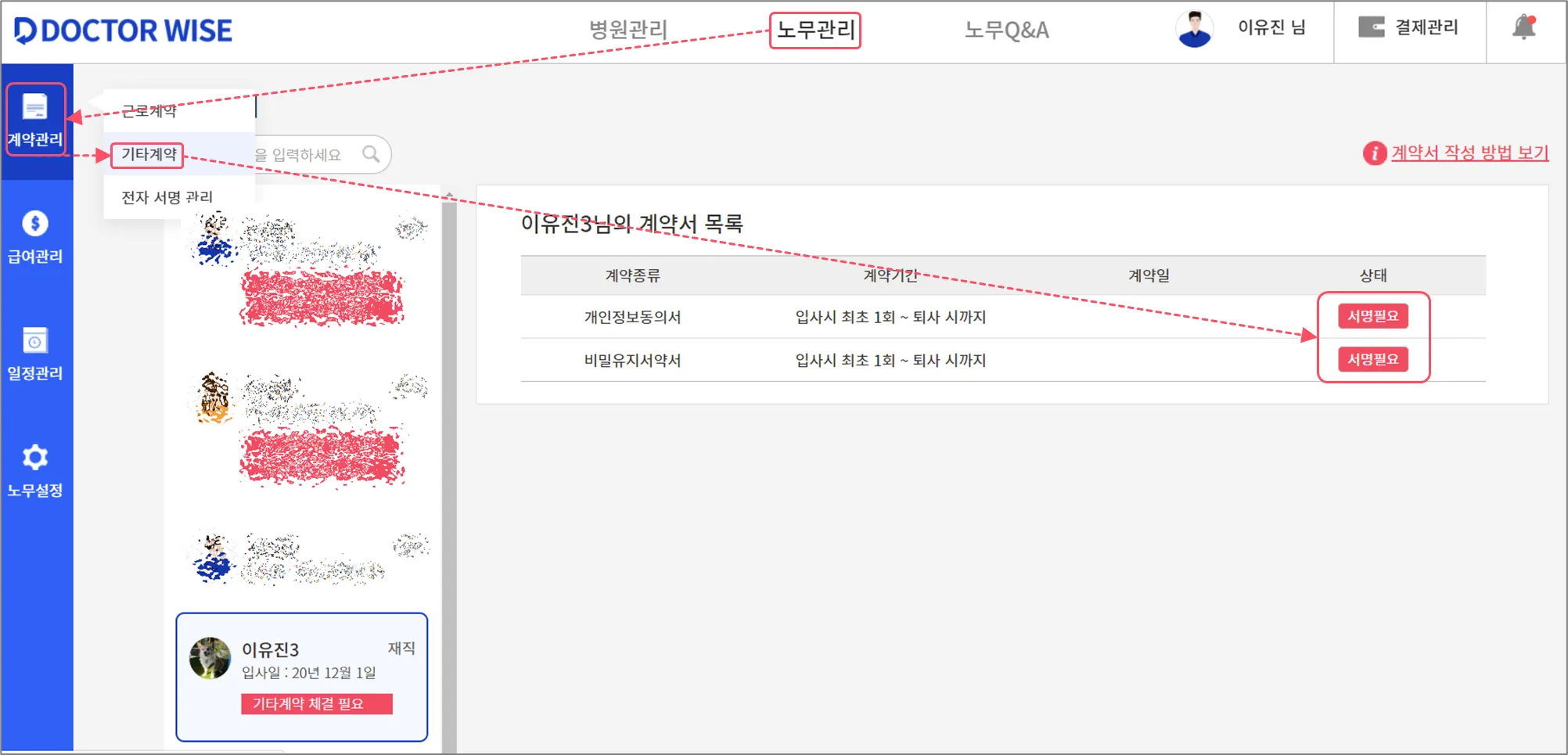 닥터와이즈는 근로자와 기타서약을 손쉽게 체결할 수 있습니다.