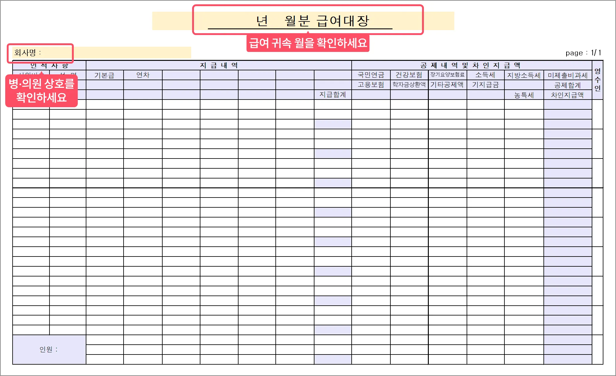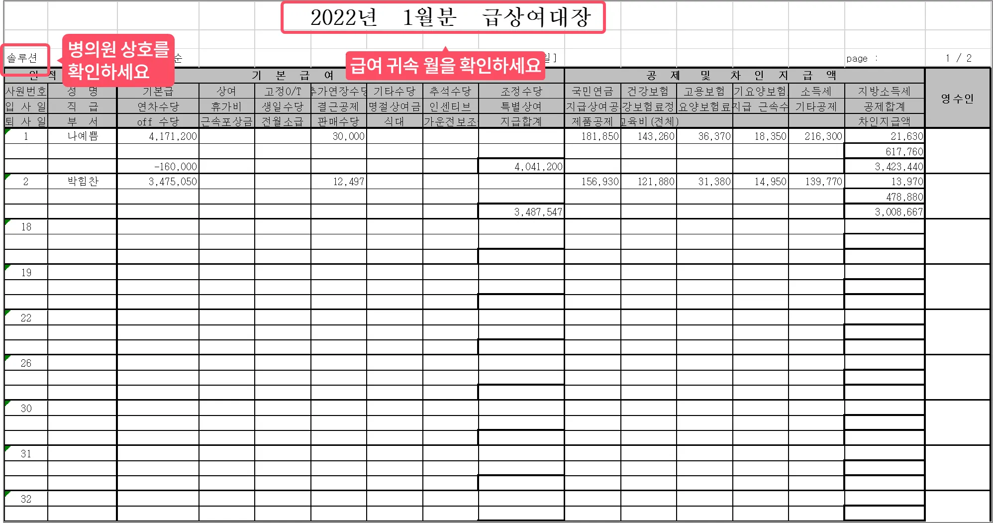1.급여대장 엑셀 파일 정보를 확인하세요