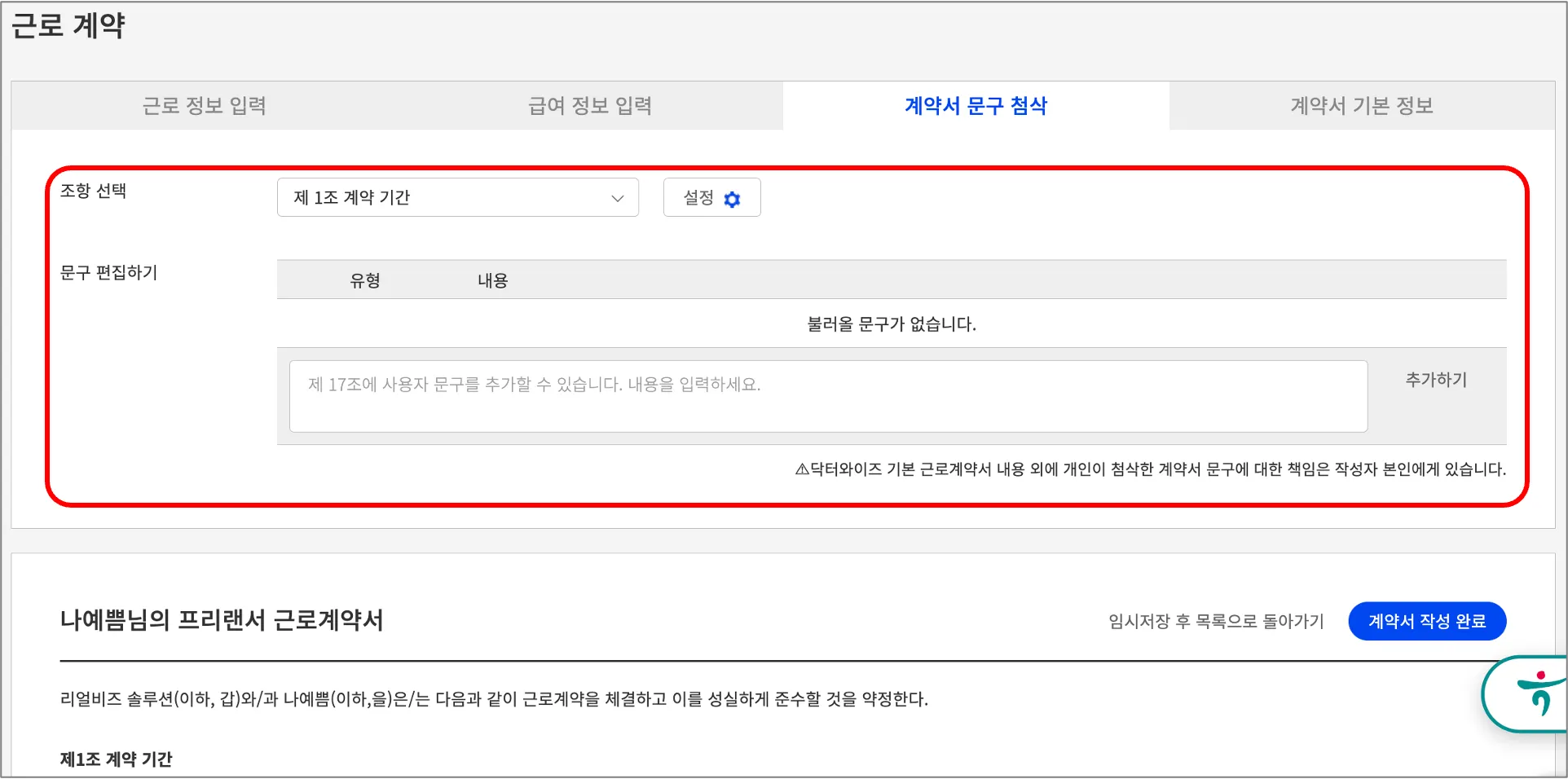 5. 계약서 문구를 수정, 추가할 수 있습니다.