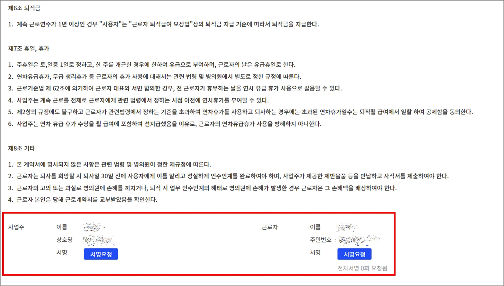 7. 계약서 문구를 수정, 추가할 수 있습니다.