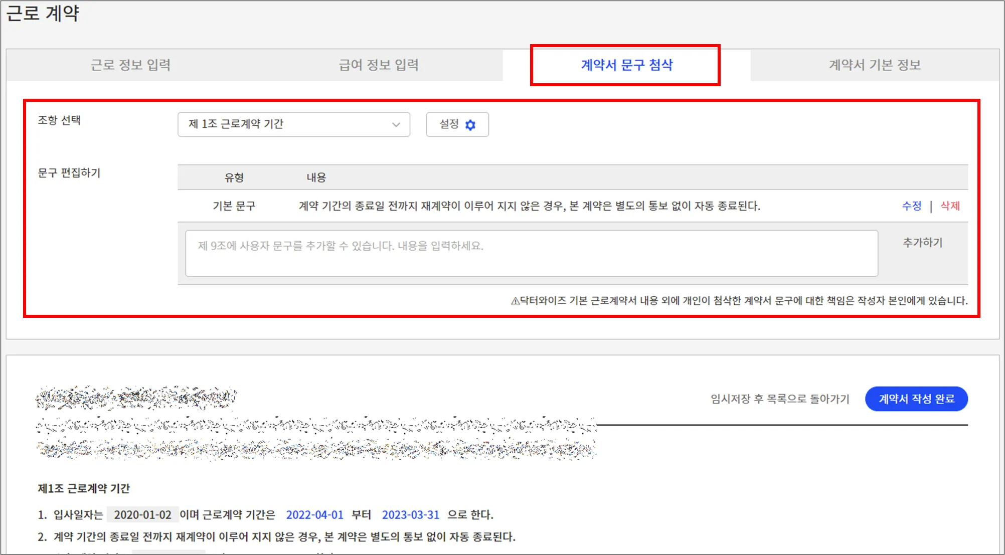 근로계약 서식 편집 기능 가이드를 확인하세요.