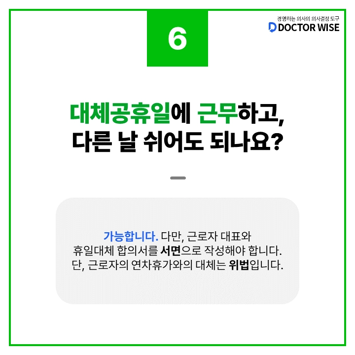 Q6. 공휴일, 대체공휴일 모두 근무하고 다른 날 쉬어도 되나요?
