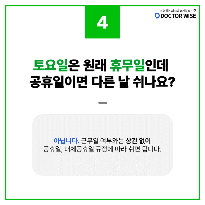 Q3. 토요일이 원래 진료일 입니다. 공휴일이면 어떻게 쉬어야 하나요?
