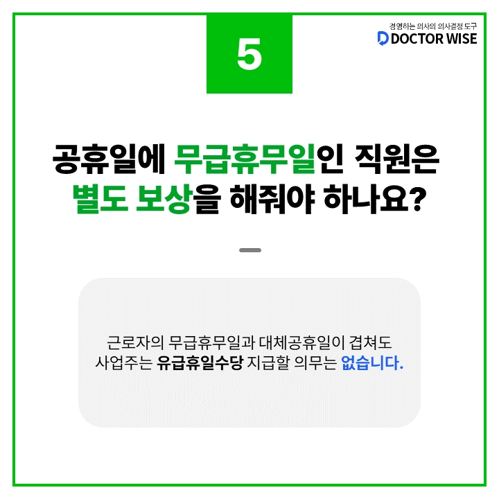 Q5. 공휴일, 대체공휴일이 무급휴무일인 근로자에게는 별도 보상을 해줘야 하나요?