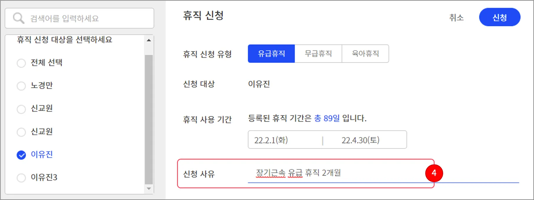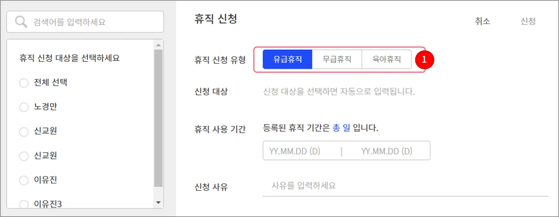 유급휴직을 등록할 근로자를 선택하세요. 여러 명을 선택할 수도 있습니다.