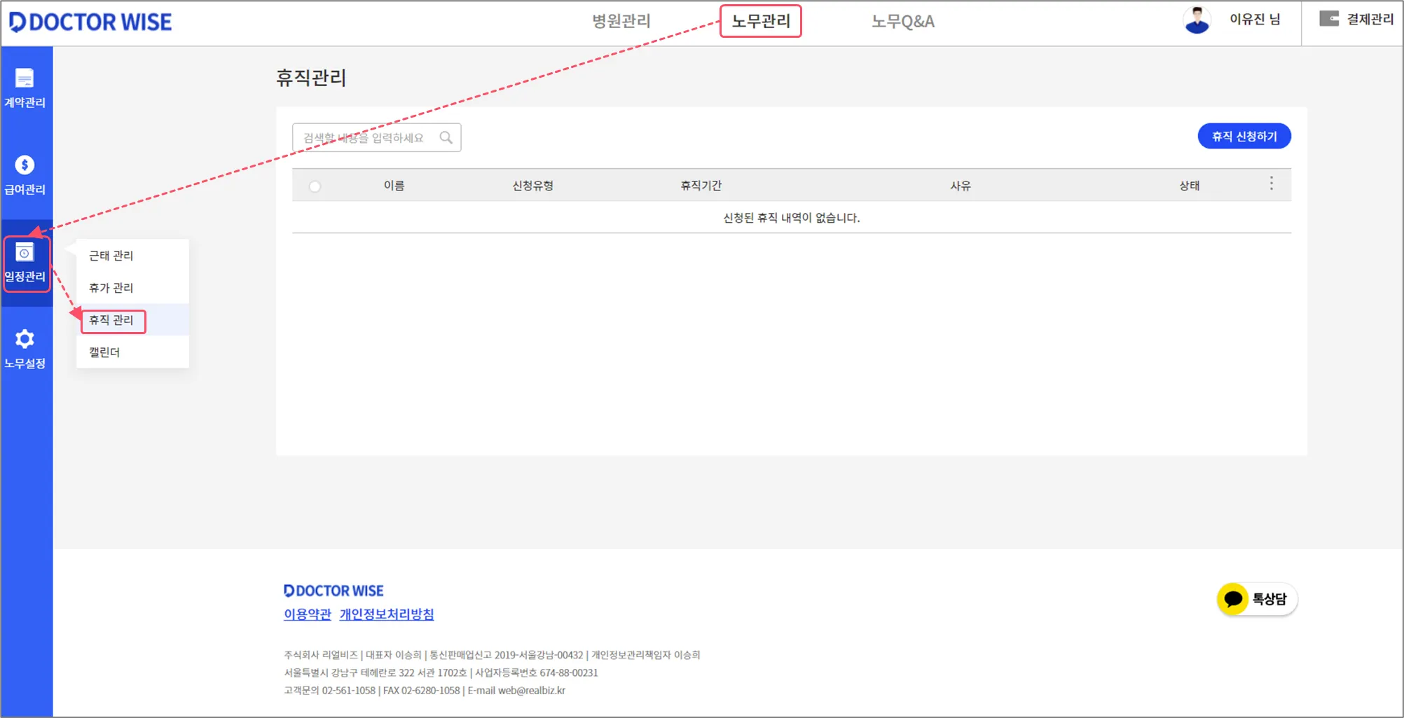 닥터와이즈는 근로자의 유급휴직, 무급휴직, 육아휴직을 손쉽게 관리할 수 있습니다.