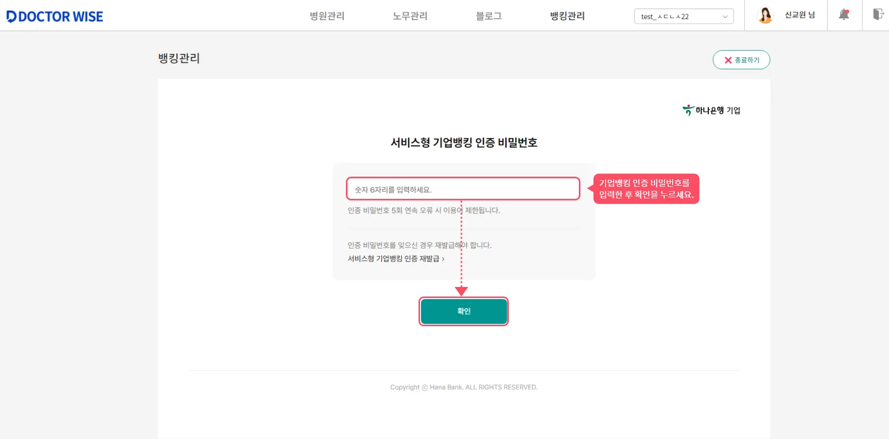 1. 하나은행 서비스형 기업뱅킹 인증 비밀번호를 입력하세요.
